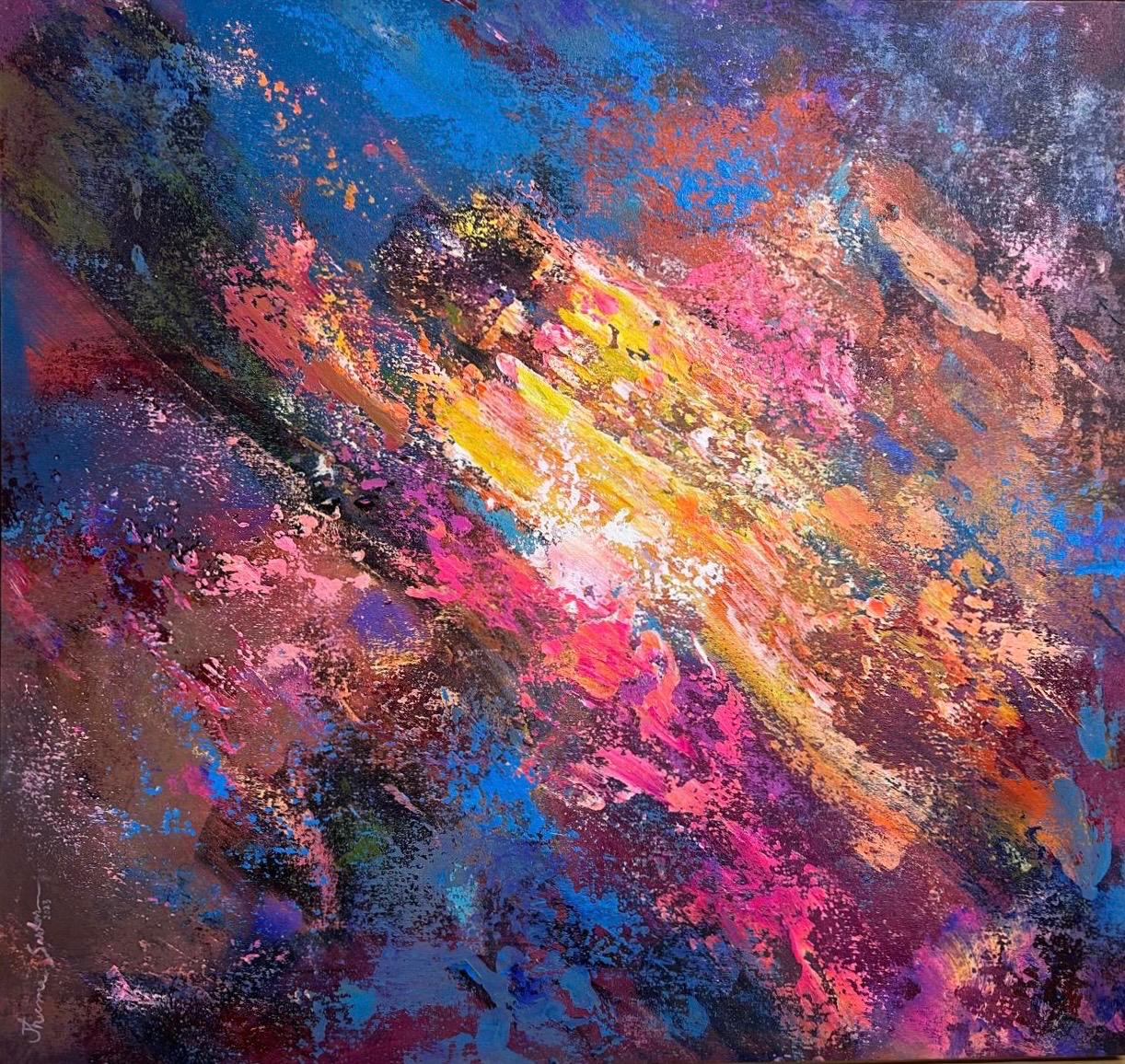 and forming layers of colour and creating force with them on the canvas. My theme is about curiosity