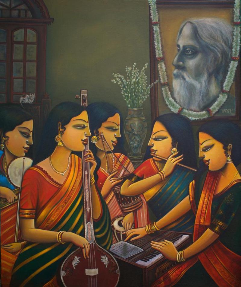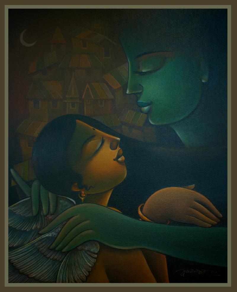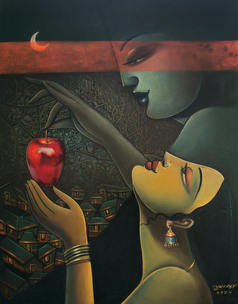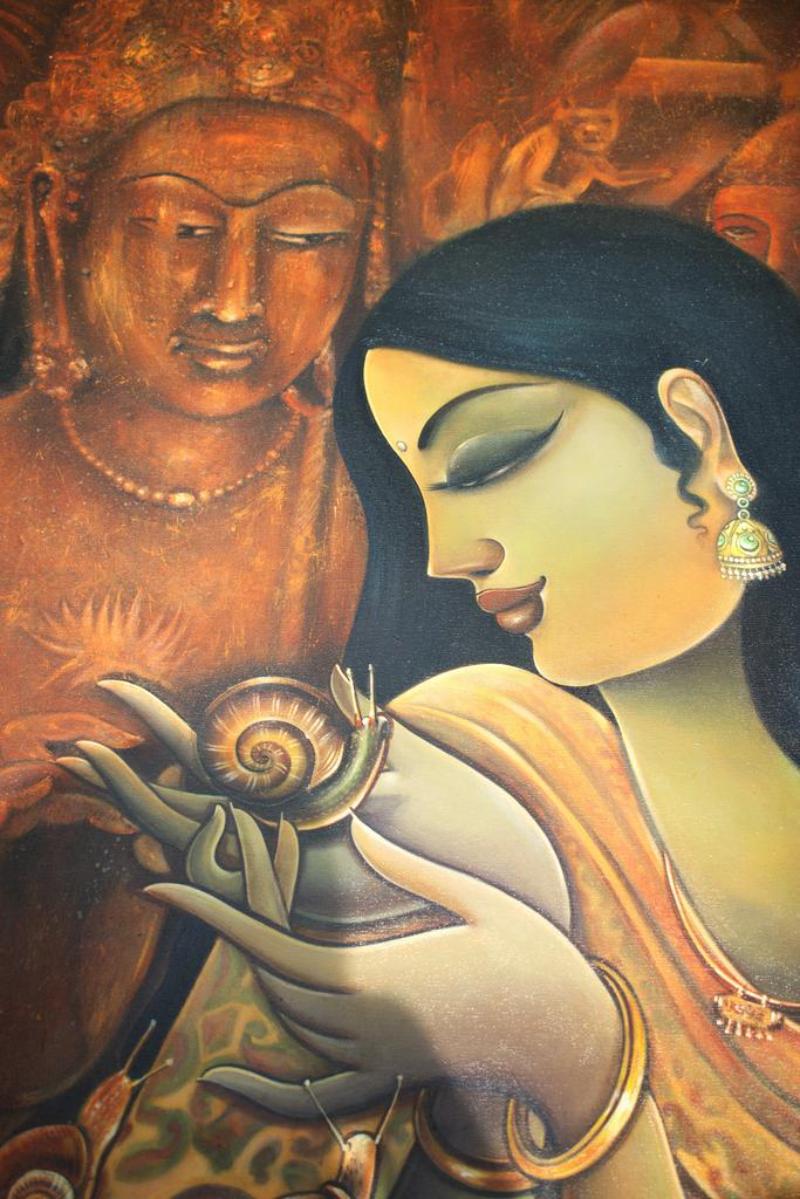 I have found the life in lines since my childhood. I was born in Kolkata. The Bengali culture, motion of city life, human emotions. relationships are the frameworks of my paintings. The way the Bengali culture celebrates the eternal power of a woman in the form of Devi Durga or Kali, always fascinates me. In addition, the vintage chalchitra and pattachitra of Bengal depicts some mystic mythological stories, stirs the very core of my mind. Women are always a source of inspiration in my life. I love to paint them in my own signature style with warm and bright colours in order to express their emotions in a profound way on white canvas. Every painting I do is a journey to me, a journey to delve my inner soul.